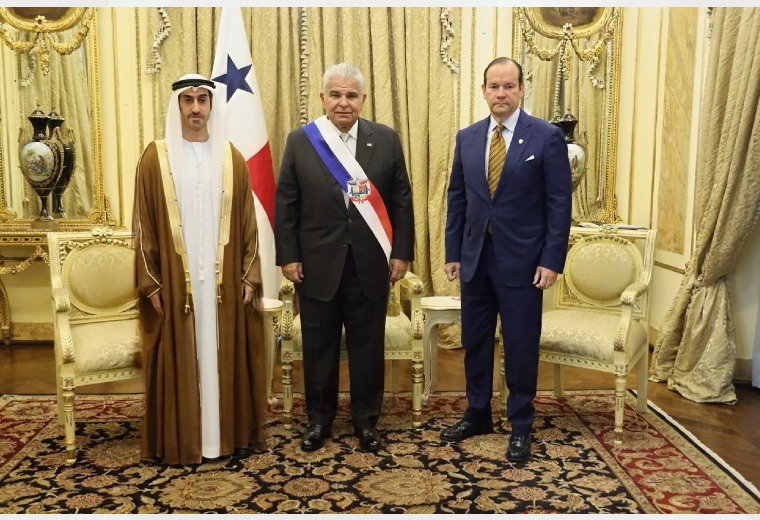 His Excellency Mohammed Abdullah bin Khater Al Shamsi presented his credentials as Non-Resident Ambassador of the UAE to the Republic of Panama to His Excellency José Raúl Mulino, President of Panama, during an official ceremony at the Presidential Palace.