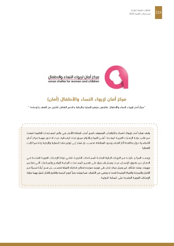 “مركز أمان لإيواء النساء والأطفال :ملتزمون بتوفير الحماية والرعاية والدعم الشامل للناجين من العنف والإساءة”.
