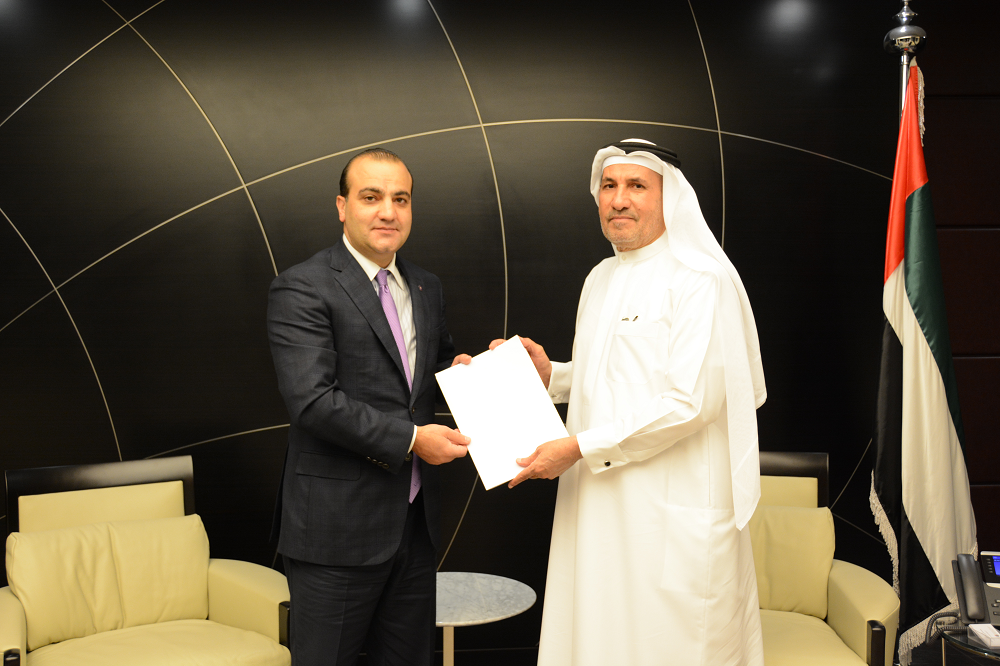 مدير مكتب وزارة الخارجية والتعاون الدولي في دبي يتسلم البراءة القنصلية للقنصل العام أرمينيا.