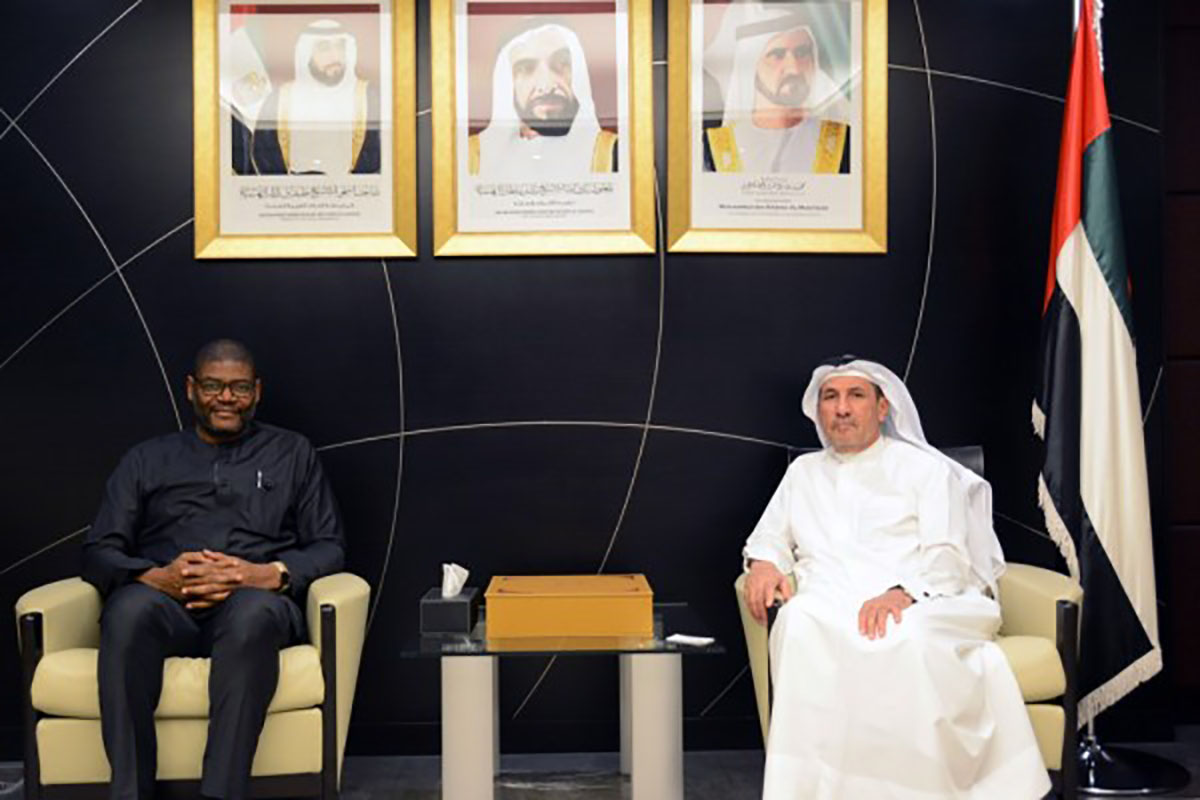 ورحب سعادته بمعالي الوزير ــ خلال اللقاء الذي عقد في مكتب وزارة الخارجية بدبي ــ وتم التحاور حول التعاون بين الإمارات وليبيريا، وبحث الزيارات المرتقبة فيما يخص دعم العلاقات بين البلدين.