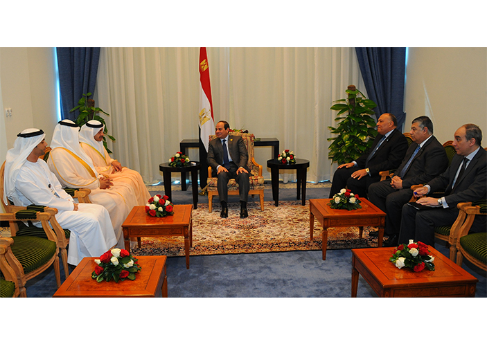 وأشاد الرئيس السيسي بالمواقف المشرفة التي تتخذها دولة الإمارات قيادة وشعبا لدعم مصر ومساندة إرادة شعبها مثنيا على جهودها لدعم الاقتصاد المصري .