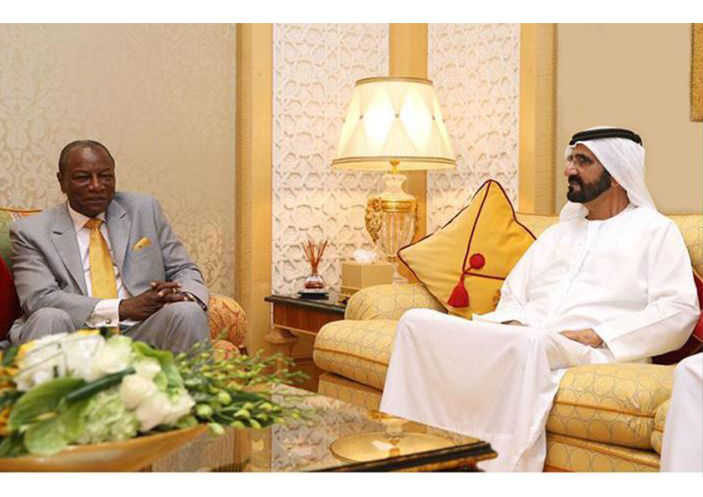 استقبل صاحب السمو الشيخ محمد بن راشد آل مكتوم نائب رئيس الدولة رئيس مجلس الوزراء حاكم دبي رعاه الله في قصر سموه في زعبيل فخامة الرئيس ألفا كوندي رئيس جمهورية غينيا الزائر والوفد المرافق.
