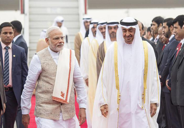 وقال صاحب السمو الشيخ محمد بن زايد آل نهيان إن العلاقات الإماراتية - الهندية ليست علاقات سياسية أو اقتصادية فحسب وإنما لها بُعدها الشعبي والثقافي العميق حيث ارتبط الشعب الهندي منذ القدم بروابط متينة مع شعوب منطقة الخليج العربي بشكل عام والشعب الإماراتي بشكل خاص وقد ساهمت الجالية الهندية في التنمية بدولة الامارات العربية المتحدة وهي محل تقدير وترحيب واحترام من قبل القيادة والشعب في الإمارات حيث تمثل جسراً حضارياً بين الشعبين والبلدين الصديقين.