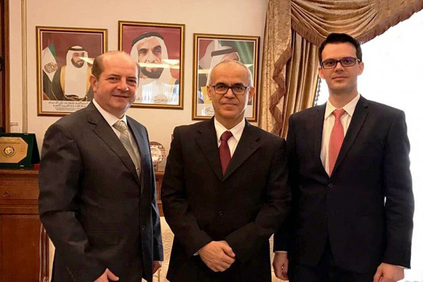 بحث سعادة الشيخ أحمد علي المعلا سفير الدولة لدى رومانيا وسعادة فيكتور دراغوشين عمدة مدينة "أليكساندريا" الرومانية اليوم سبل دعم وتطوير علاقات التعاون بين دولة الإمارات وجمهورية رومانيا في مختلف المجالات.
