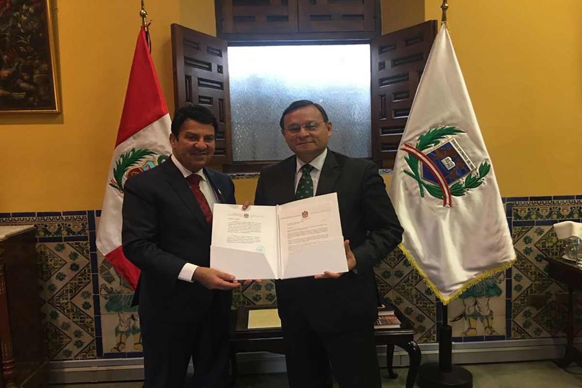 سفير الدولة لدى البيرو يقدم دعوة اكسبو دبي 2020 إلى نائب وزير الخارجية البيروفي.