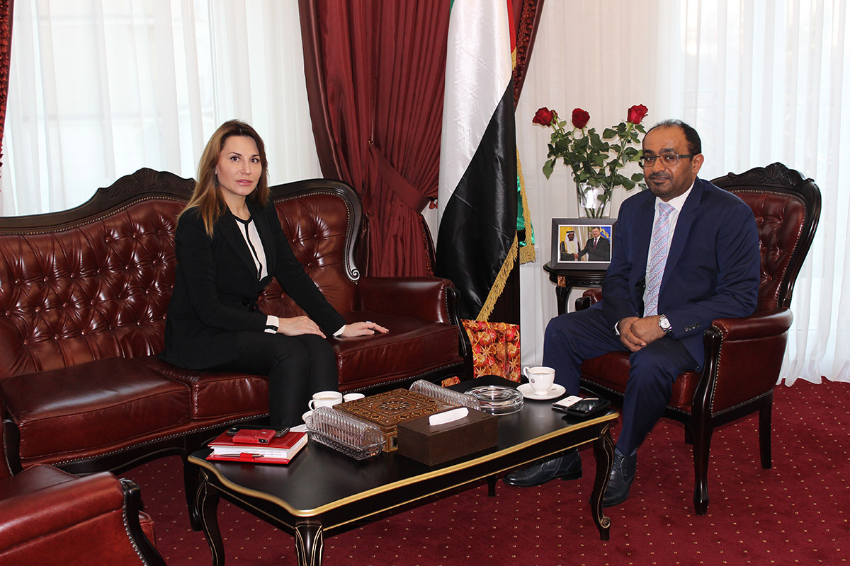 التقى سعادة سالم أحمد سالم الكعبي سفير الدولة لدى جمهورية أوكرانيا السيدة إيرينا سيسوينكو رئيسة مجموعة الصداقة البرلمانية "الأوكرانية الإماراتية" وذلك في مقر السفارة بالعاصمة كييف.