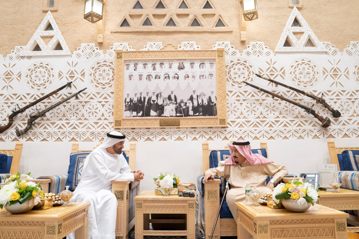 جاء ذلك خلال استقبال الملك سلمان بن عبد العزيز آل سعود اليوم صاحب السمو الشيخ محمد بن زايد آل نهيان والوفد المرافق في قصر العوجا في الرياض.