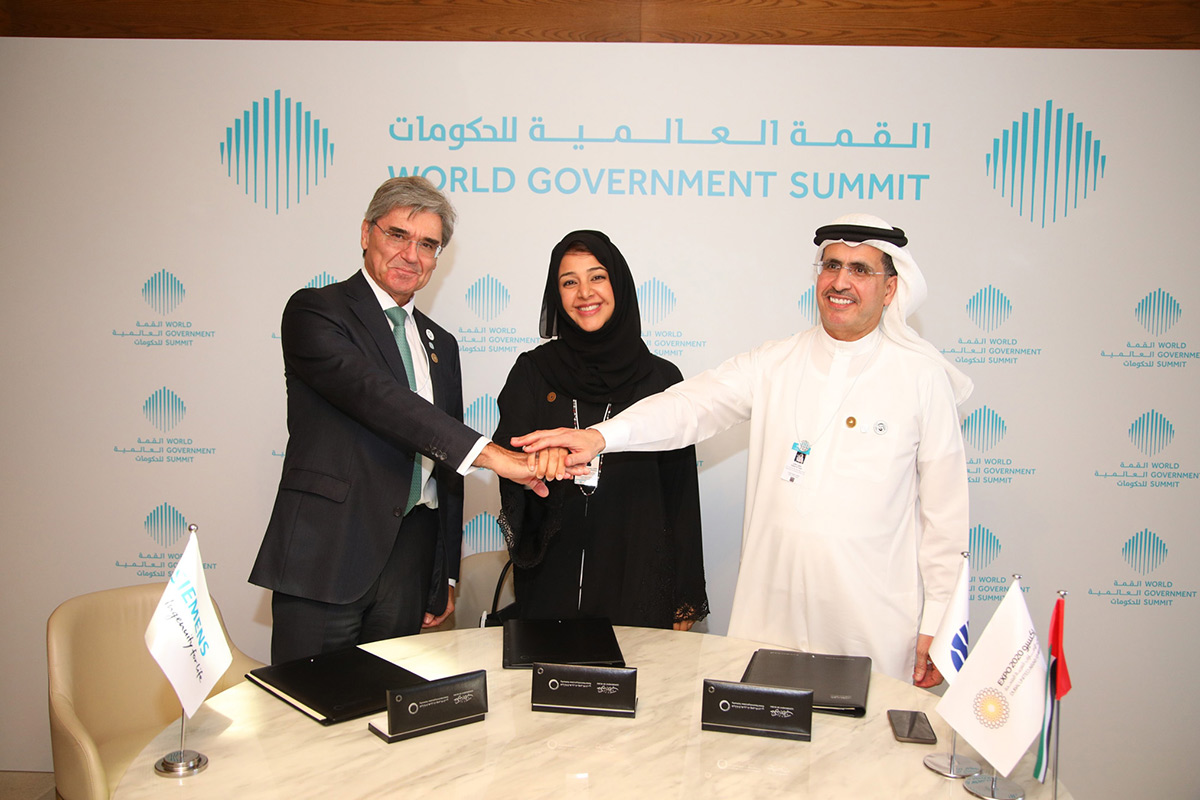 وقعت معالي ريم بنت إبراهيم الهاشمي وزيرة دولة لشؤون التعاون الدولي المدير العام لمكتب إكسبو 2020 دبي وسعادة سعيد محمد الطاير العضو المنتدب الرئيس التنفيذي لهيئة كهرباء ومياه دبي وجو كايزر الرئيس والمدير التنفيذي لشركة "سيمنس" مذكرة تفاهم للتنسيق بشأن تطوير أول منشأة تجريبية في المنطقة للتحليل الكهربائي الهيدروجيني تعمل بالطاقة الشمسية في منشآت الاختبارات الخارجية التابعة للهيئة في مجمع محمد بن راشد آل مكتوم للطاقة الشمسية في دبي.