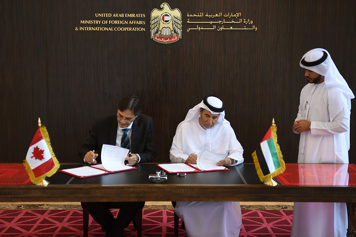 وقعت دولة الإمارات العربية المتحدة وكندا - أمس - اتفاقية تعاون في مجال الشؤون والخدمات القنصلية.. تهدف إلى دفع وترسيخ التعاون في جميع المجالات القنصلية المشتركة بين البلدين.