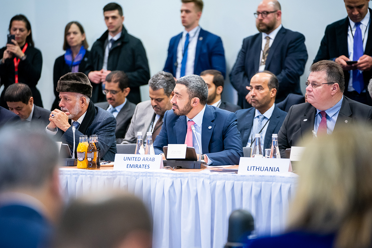 وقد شارك سمو الشيخ عبدالله بن زايد آل نهيان في الجلسة الافتتاحية للمؤتمر وكذلك جلسة حول تقييم أوضاع منطقة الشرق الأوسط والجهود الدولية المبذولة.