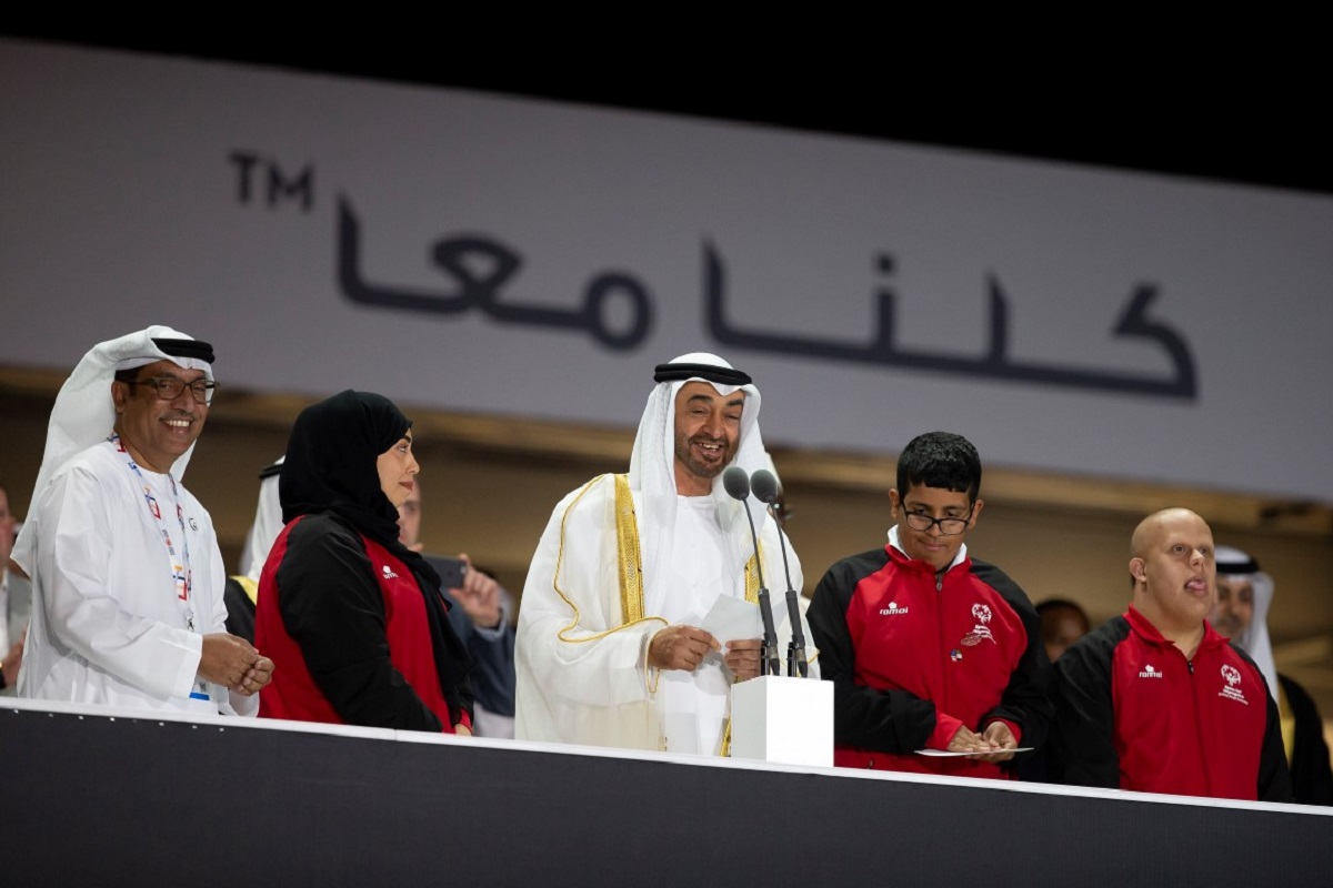 و وسط حضور جماهيري من محبي الألعاب العالمية الخاصة و ضيوف الدولة.. أعلن صاحب السمو الشيخ محمد بن زايد آل نهيان الانطلاق الرسمي لألعاب الأولمبياد الخاص.