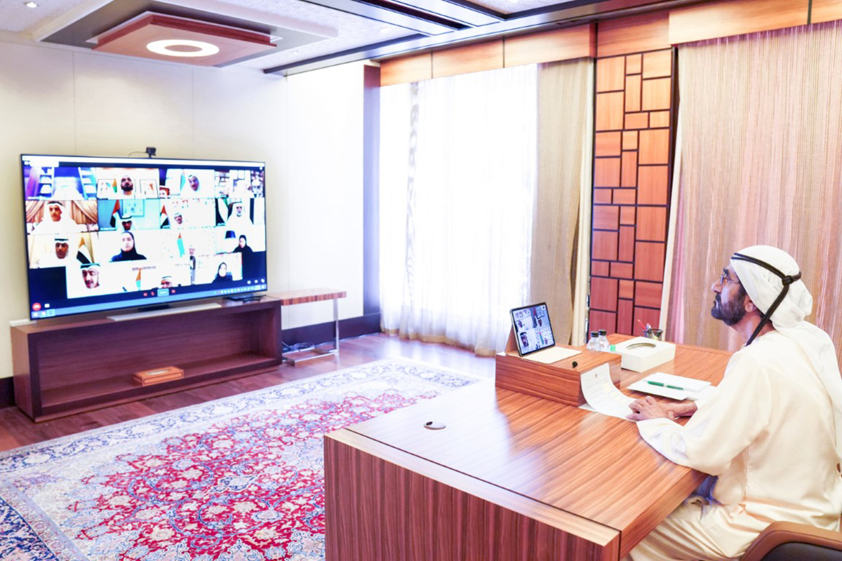 اطلع صاحب السمو الشيخ محمد بن راشد آل مكتوم في بداية الاجتماع على عرض من معالي الوزراء للإحاطة حول آخر مستجدات الاجراءات المتخذة في الحكومة للتعامل مع تداعيات فيروس كورونا المستجد.