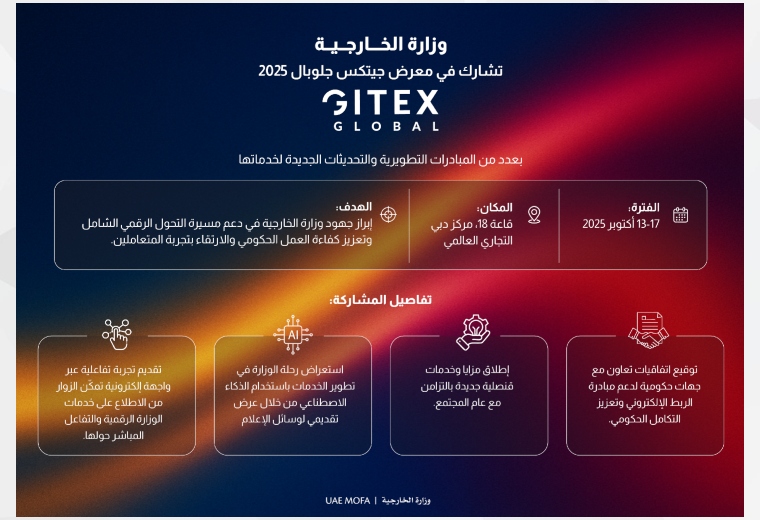 وزارة الخارجية تشارك في النسخة الـ45 من "جيتكس جلوبال " بمبادرات تطويرية وتحديثات رقمية جديدة