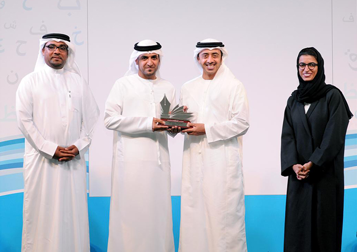 وأعربت عن شكرها وتقديرها لراعي الجائزة سمو الشيخ عبدالله بن زايد آل نهيان.