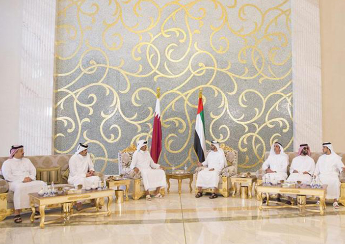 جاء ذلك خلال استقبال صاحب السمو الشيخ محمد بن زايد آل نهيان في أبوظبي اخاه صاحب السمو الشيخ تميم بن حمد آل ثاني الذي يقوم بزيارة للدولة .