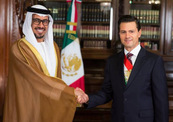 تسلم فخامة الرئيس أنريكي بينيا نييتو رئيس الولايات المتحدة المكسيكية أوراق اعتماد سعادة أحمد حاتم المنهالي سفيرا فوق العادة ومفوضا لدولة الإمارات لدى المكسيك.