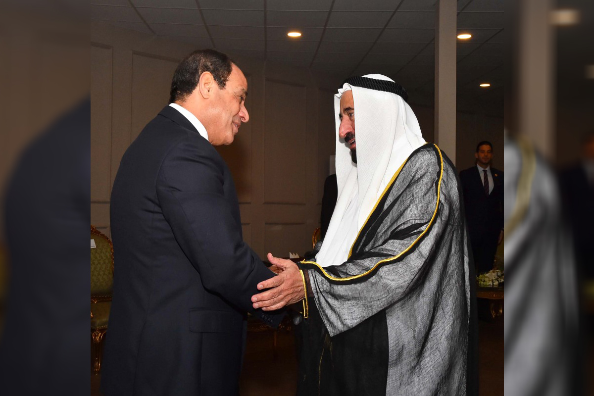 حاكم الشارقة يشهد انطلاق فعاليات منتدى شباب العالم بشرم الشيخ تلبية لدعوة الرئيس المصري.