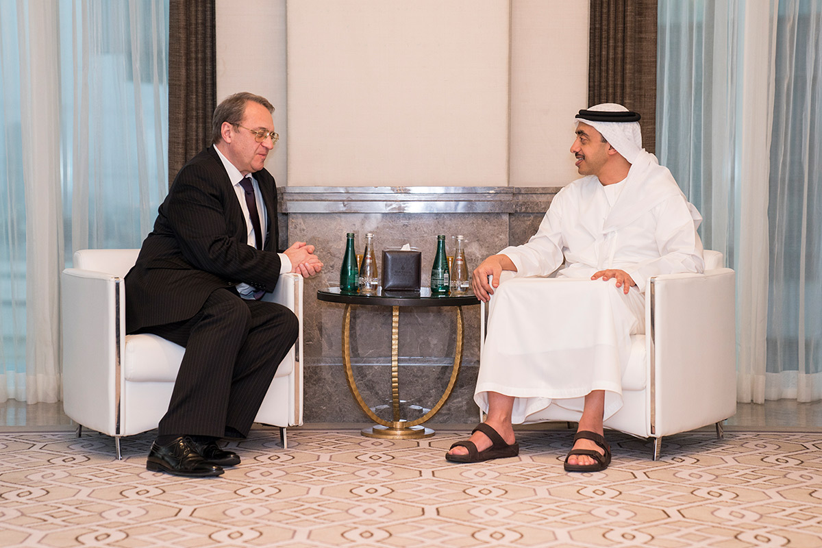 استقبل سمو الشيخ عبدالله بن زايد آل نهيان وزير الخارجية والتعاون الدولي في أبوظبي سعادة ميخائيل بوغدانوف مبعوث رئيس روسيا الاتحادية الخاص بالشرق الأوسط ودول أفريقيا نائب وزير الخارجية الذي يزور البلاد حاليا.