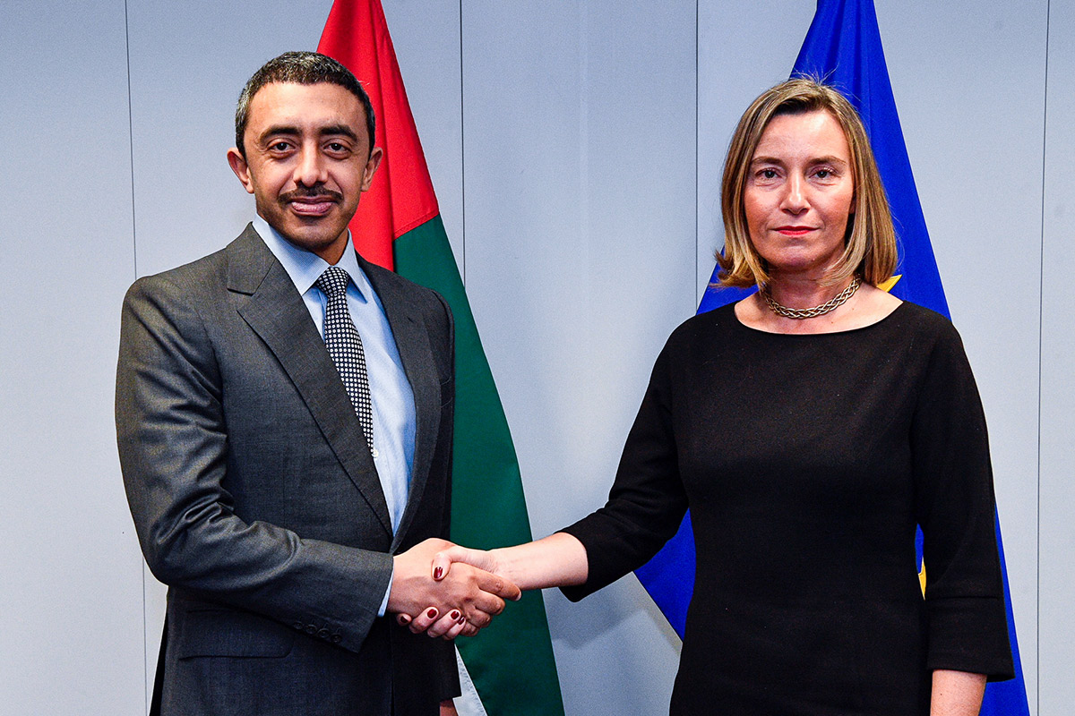التقى سمو الشيخ عبدالله بن زايد آل نهيان وزير الخارجية والتعاون الدولي - بمقر الاتحاد الأوروبي في العاصمة البلجكية بروكسل - معالي فديريكا موغيرني الممثلة العليا للاتحاد الأوروبي للشؤون الخارجية والسياسة والأمنية نائبة رئيس المفوضية الأوروبية.