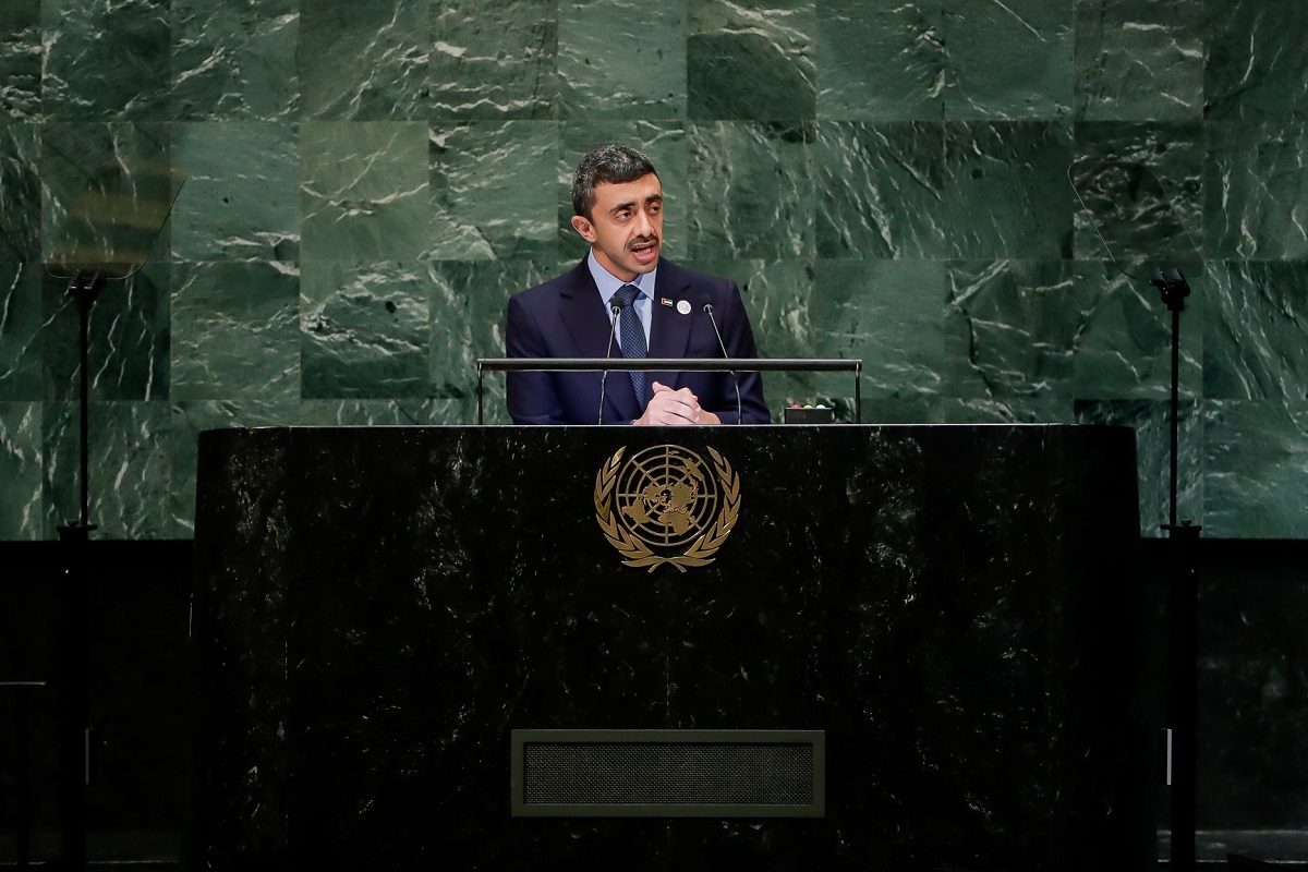جاء ذلك خلال خطاب سمو الشيخ عبدالله بن زايد آل نهيان وزير الخارجية والتعاون الدولي، اليوم ، أمام الدورة الـ 73 للجمعية العامة للأمم المتحدة.