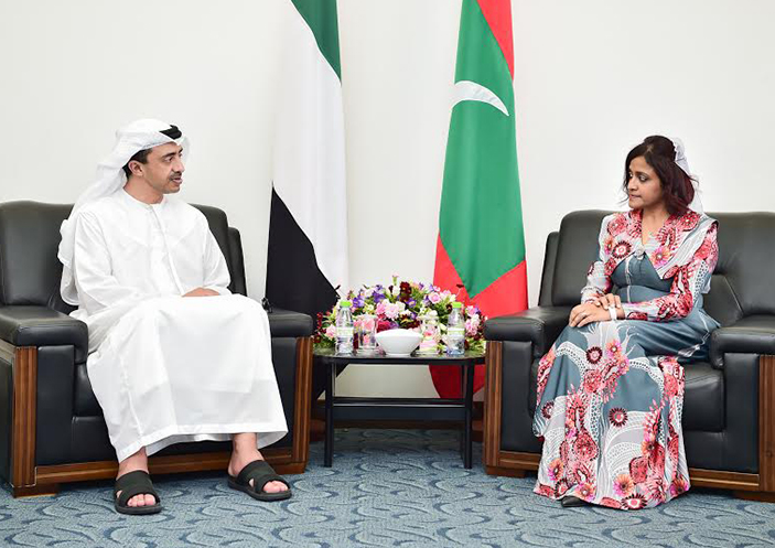 H.H. Sheikh Abdullah bin Zayed Al Nahyan, Minister of Foreign Affairs and International Cooperation, met the Foreign Minister of the Republic of Maldives, Dunya Maumoon.