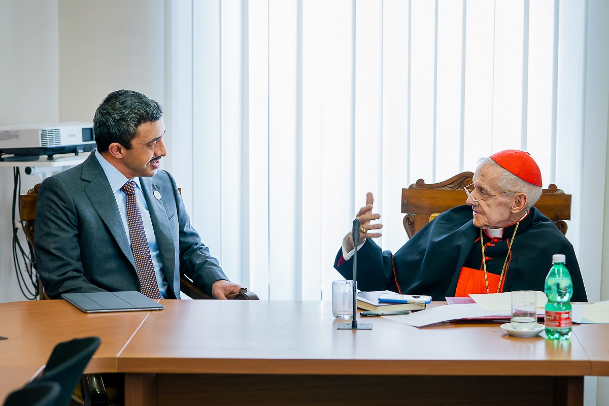 H.H. Sheikh Abdullah bin Zayed Al Nahyan, Minister of Foreign Affairs and International Cooperation today met Cardinal Jean-Louis Pierre Tauran, the President of the Pontifical Council for the Interreligious Dialogue in the Vatican State to discuss ways of boosting cooperation between the two countries.