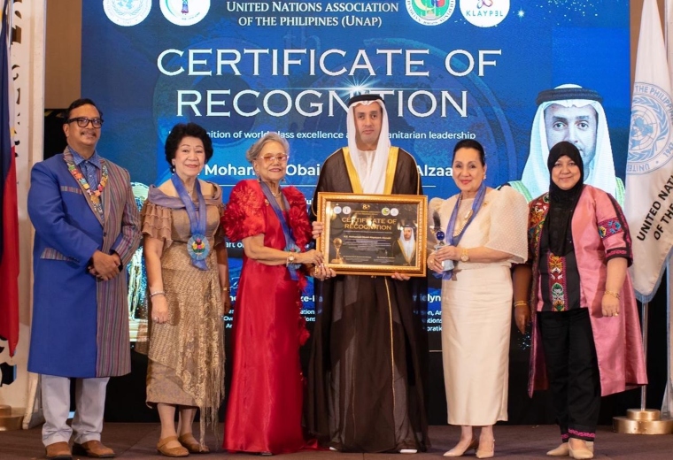 His Excellency Mohamed Obaid Salem Al Zaabi, UAE Ambassador to the Republic of the Philippines, was recognized as an “Ambassador of Goodwill for Peace” by the United Nations Association of the Philippines (UNAP), during the celebrations for the 80th anniversary of the UN and the Outstanding Humanitarian Awards night, which was held on 24th October 2025.