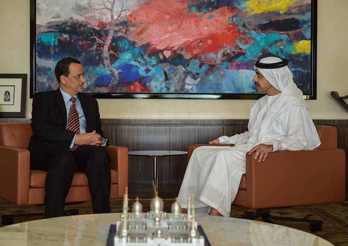 H.H. Sheikh Abdullah bin Zayed Al Nahyan, Foreign Minister, received Ismail Ould Cheikh Ahmed, Special Envoy of the UN Secretary-General for Yemen.