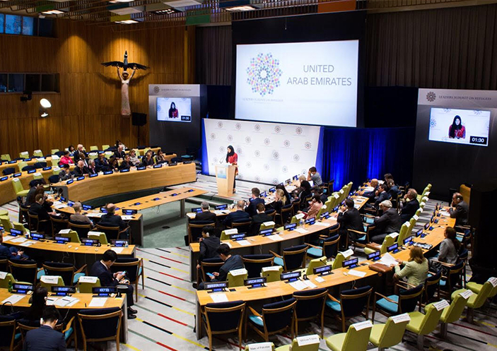Speaking at the "Leaders’ Summit on Refugees", which was held at the UN headquarters, H.E. Reem bint Ibrahim Al Hashemi, Minister of State for International Cooperation, said, "Five years ago, before the Syrian crisis erupted, 115,000 Syrians lived and worked in the UAE, joining more than 200 different nationalities and ethnicities that make up the tapestry of our diverse society and whose active and significant contributions are a clear rebuttal to the global wave of xenophobia. Since then, we have welcomed more than 123,000 Syrians."