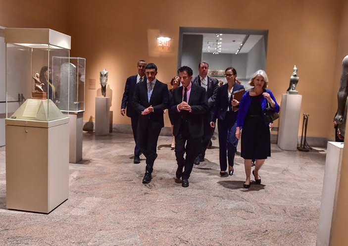 H.H. Sheikh Abdullah bin Zayed Al Nahyan, UAE Minister of Foreign Affairs and International Cooperation, has participated in a cultural event at the Egyptian art display of the Temple of Dendur, dedicated to the deity, Isis, in the Metropolitan Museum of Art in Manhattan, New York City, alongside French President, Francois Hollande, US Vice President, Joe Biden, and the Director-General of the United Nations Educational, Scientific and Cultural Organisation (UNESCO), Irina Bokova, along with other notable guests.