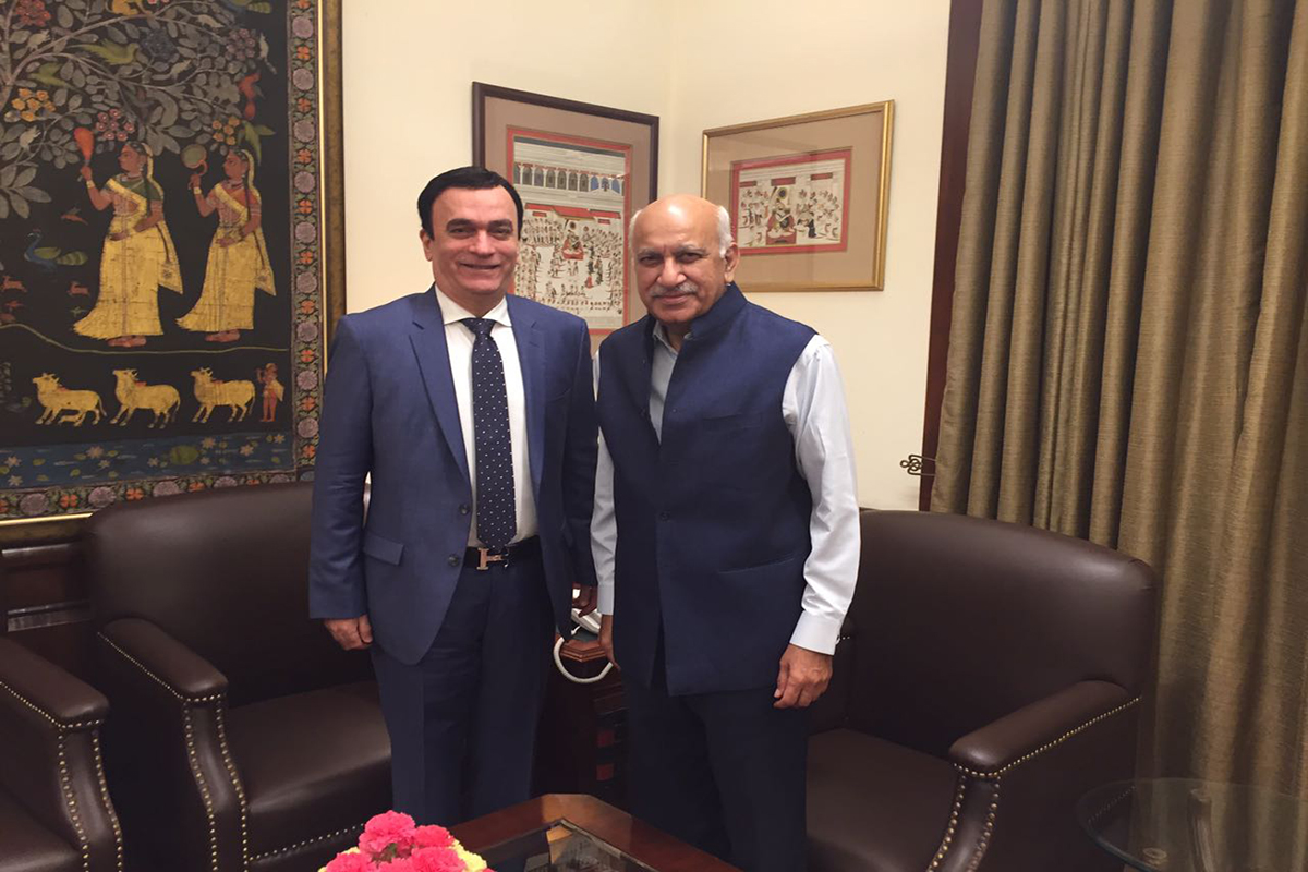 UAE Ambassador to the Republic of India, Dr. Ahmed Abdul Rahman Al-Banna, today met with M.J. Akbar, Indian Minister of State for External Affairs, at the ministry's Headquarters in New Delhi.