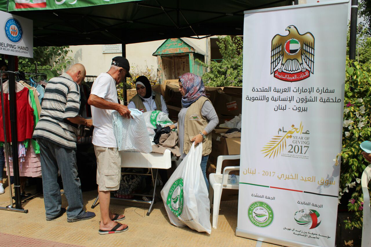 The Khalifa Bin Zayed Al Nahyan Foundation, in co-operation with the UAE Embassy in Lebanon, has launched a humanitarian initiative supporting a charity market in Lebanon set up to provide displaced Syrians and Palestinians with clothing and other supplies before Eid Al Adha.
