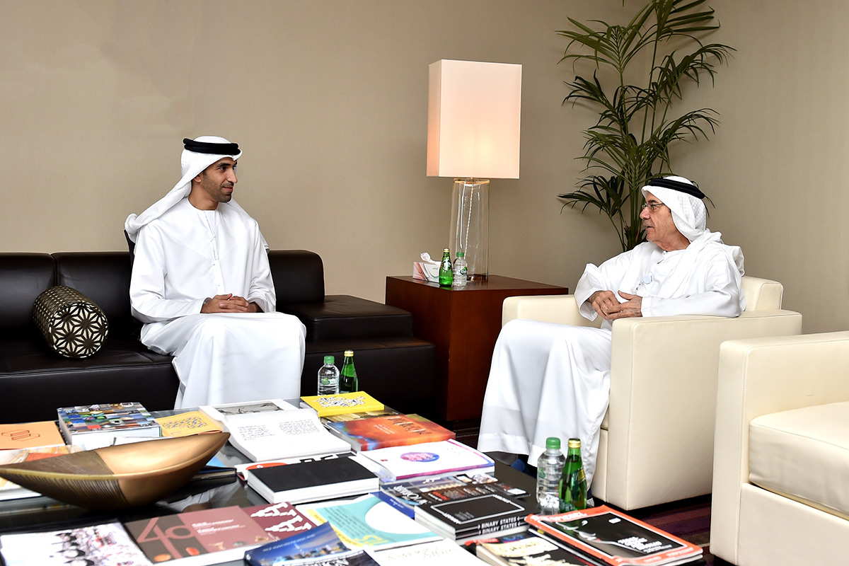 Zaki Nusseibeh, Minister of State, has received Dr. Thani bin Ahmed Al-Zeyoudi, Minister of Climate Change and Environment, at his office in the Ministry of Foreign Affairs and International Cooperation.