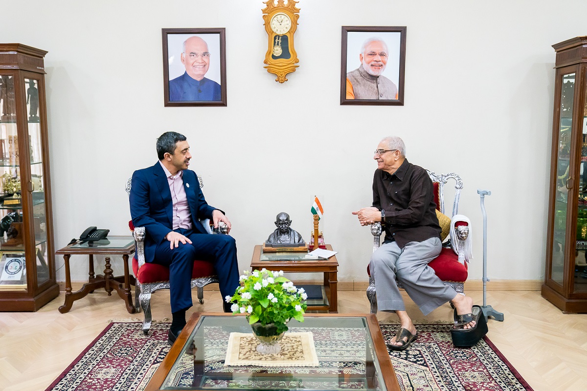 H.H. Sheikh Abdullah bin Zayed Al Nahyan, UAE Minister of Foreign Affairs and International Cooperation, has met with O.P. Kohli, Governor of Gujarat State, in the city of Ahmedabad, as part of his official visit to India.