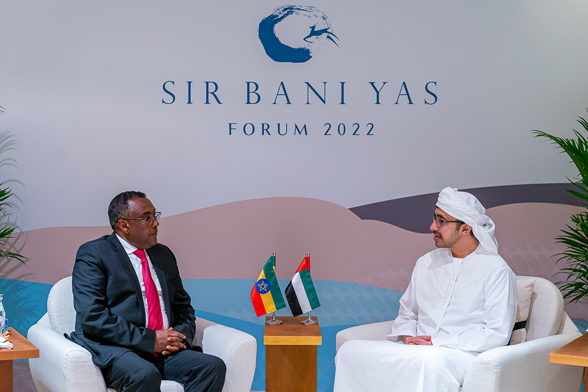 H.H. Sheikh Abdullah bin Zayed Al Nahyan, Minister of Foreign Affairs and International Cooperation, discussed during a meeting in Abu Dhabi with Demeke Mekonnen Hassen, Ethiopian Deputy Prime Minister and Minister for Foreign Affairs, the bilateral relations and means of enhancing and expanding prospects of cooperation between the UAE and Ethiopia in a way that will serve development goals in the two friendly countries.