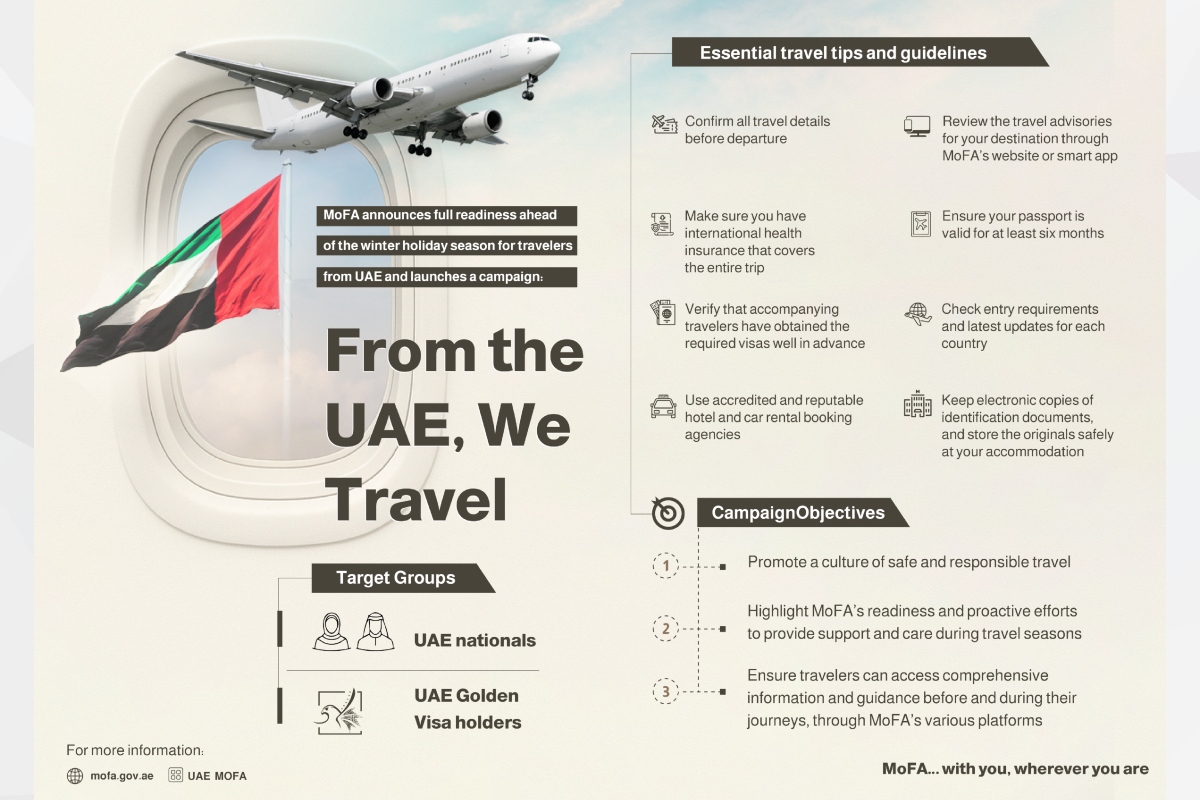 The Ministry of Foreign Affairs (MoFA) announced the launch of the “From the UAE, We Travel” campaign in preparation for the winter holiday