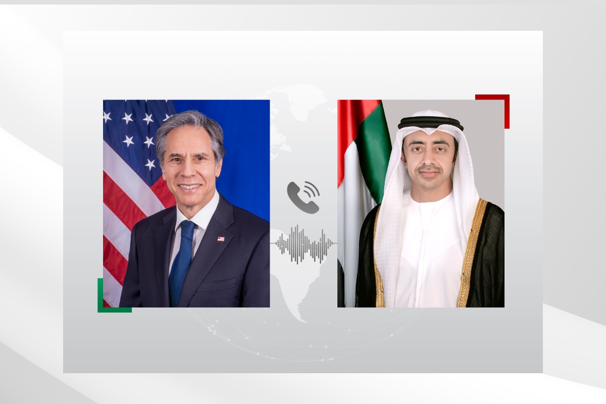 عبدالله بن زايد يثمن خلال اتصال مع بلينكن مقترحات الرئيس الأمريكي بشأن إنهاء الحرب في غزة